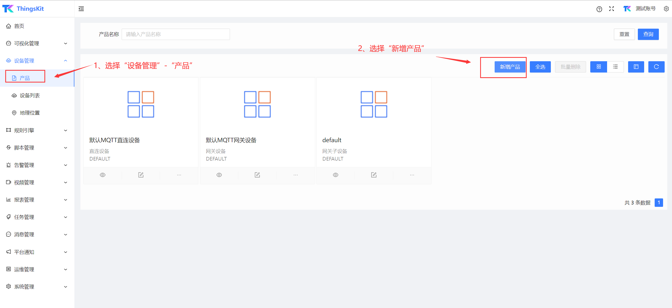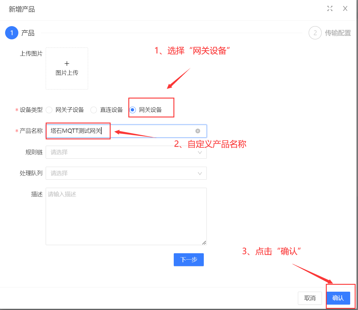 3-1、创建产品配置》》网关设备【MQTT】方式
