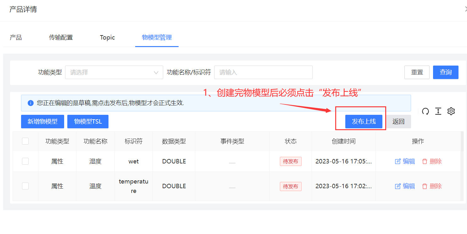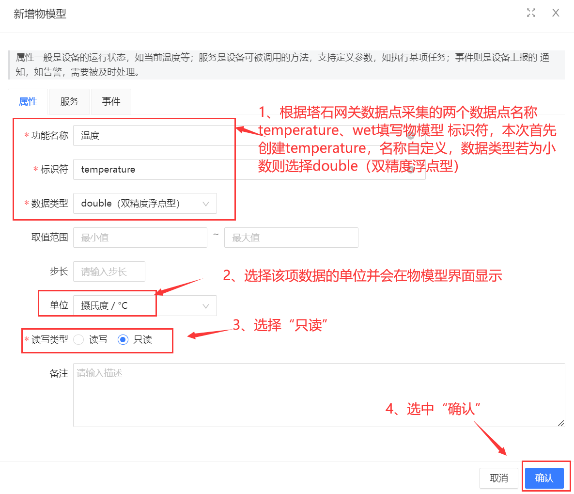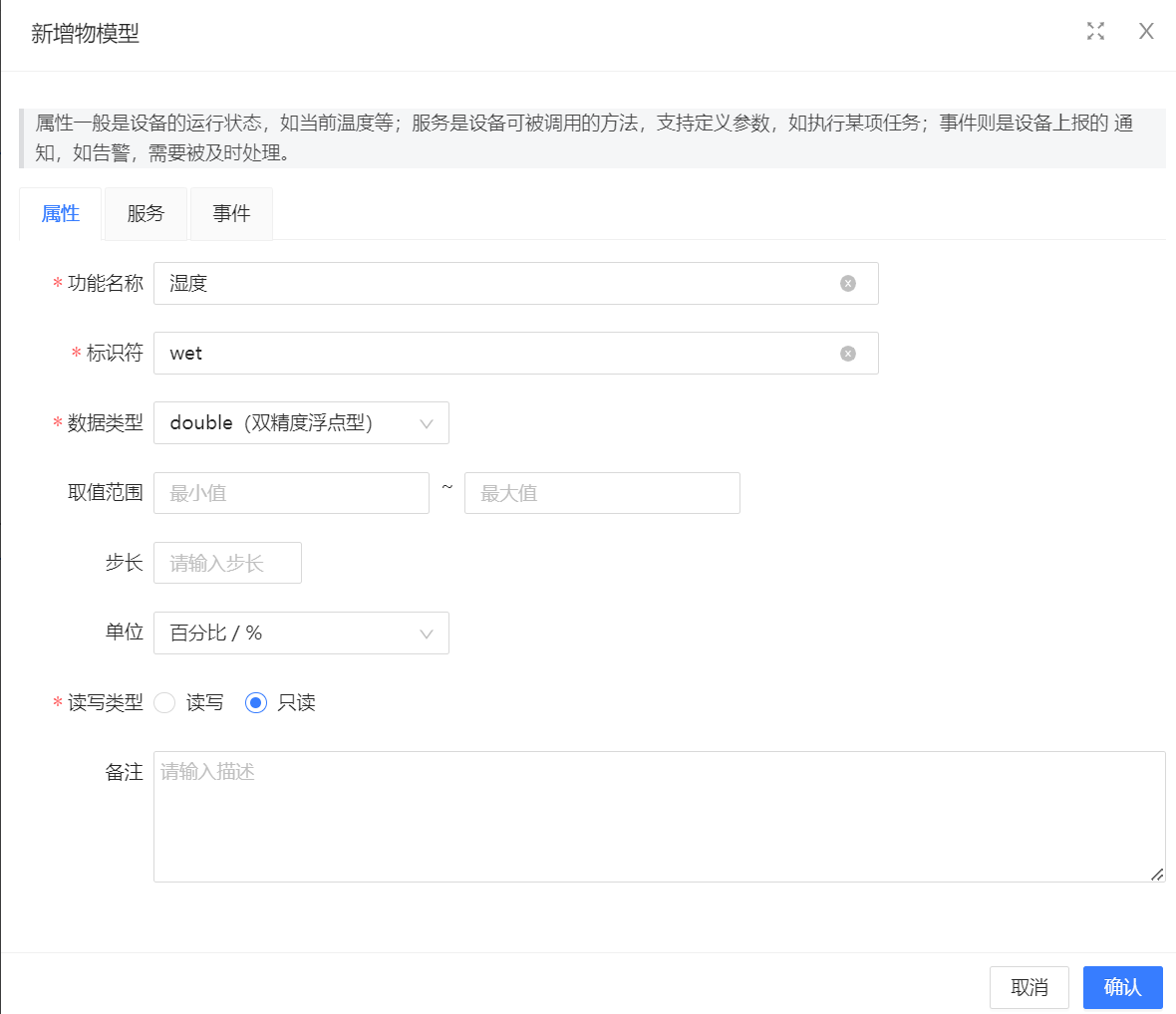 PS:另一个数据点的物模型模板,步骤与第一个数据点物模型创建一致