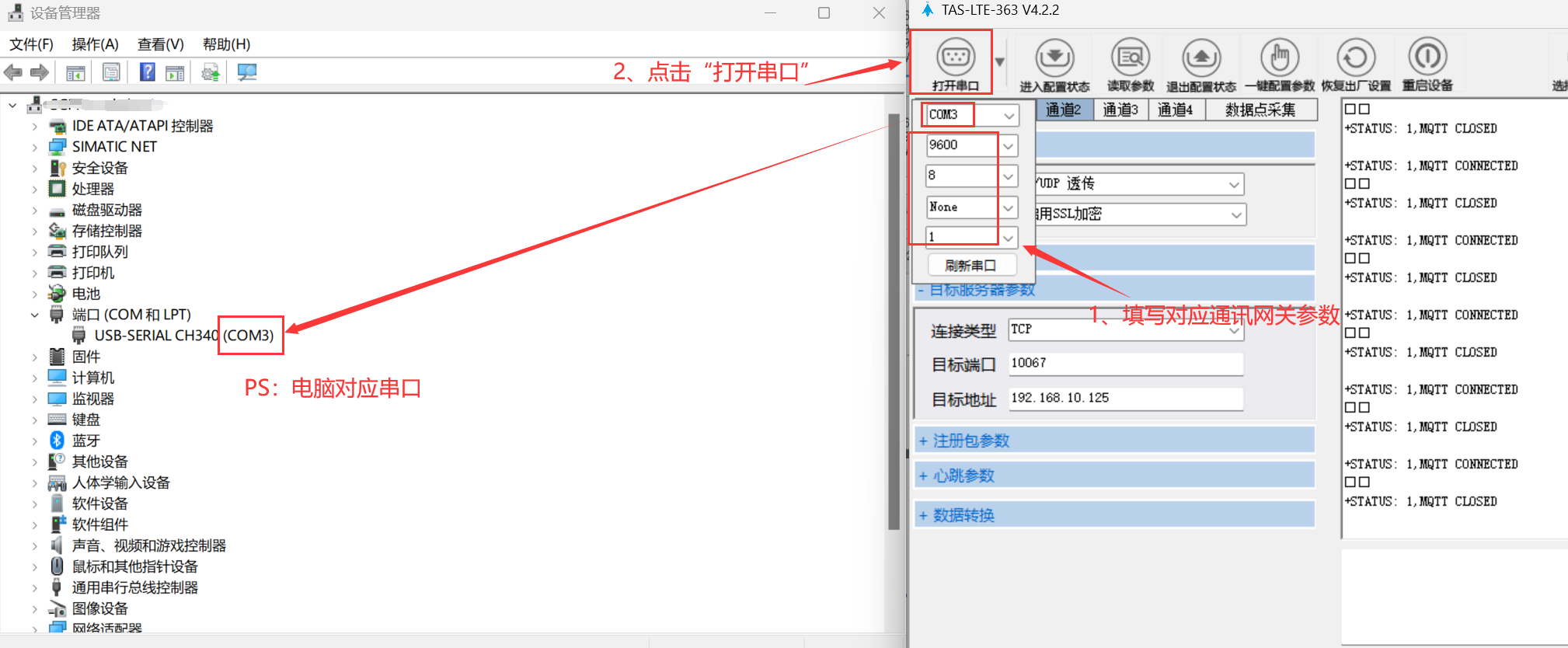 PS:如何打开计算机管理,右击》我的电脑》管理》设备管理器,在设备管理器“端口(COM和LPT)”处查看对应串口