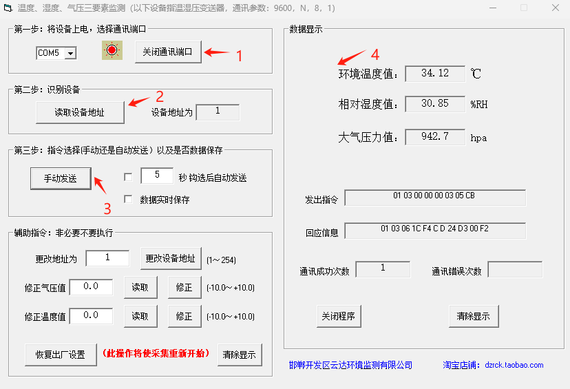 设备3:卡轨温度湿度气压变送器三合一传感器RS232