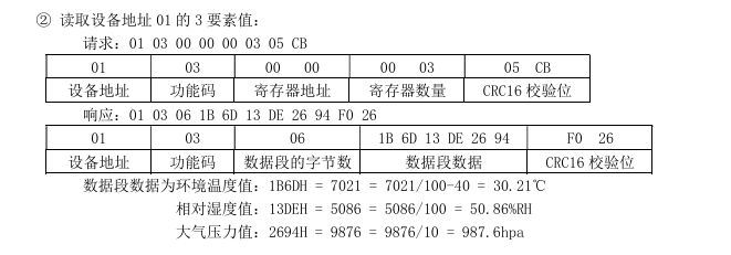 温湿度气压传感器中温度湿度寄存器(保持寄存器)地址: