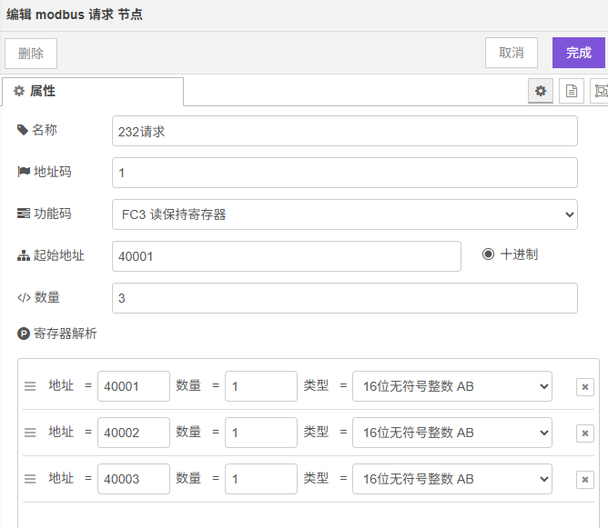 此处为语雀视频卡片,点击链接查看:AIoTedge-RS232串口节点+Modbus请求解析.mp4