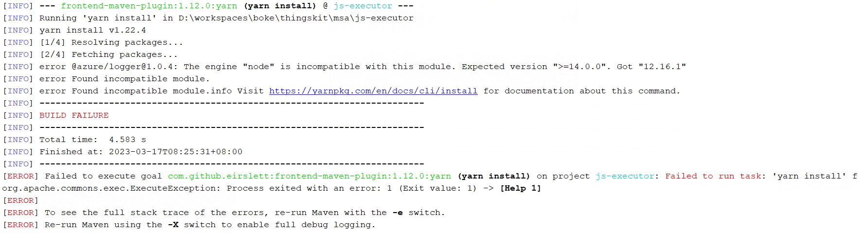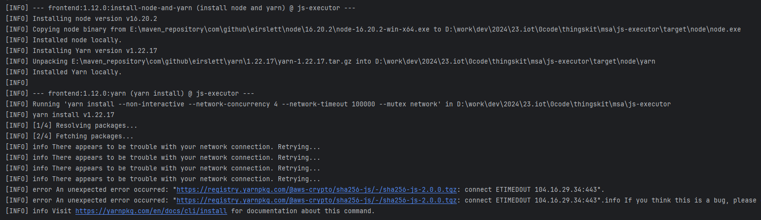 ❓ ThingsKit后端使用Maven编译前端组件js-executor和ui-ngx总是yarn install 失败?