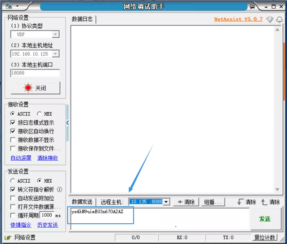 示例:UDP模拟工具注册包设置: